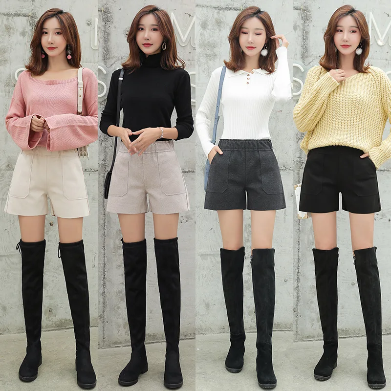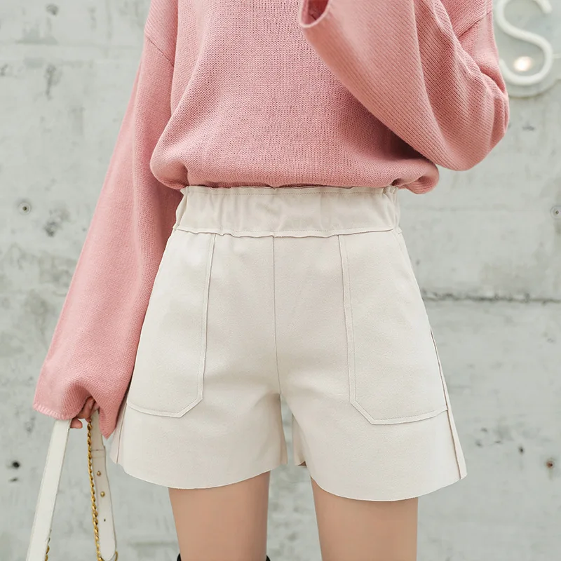 lower price Woolen Shorts Women Autumn Winter Shorts New Wide-leg Short Pants High Waist Casual Wool Pants Fema