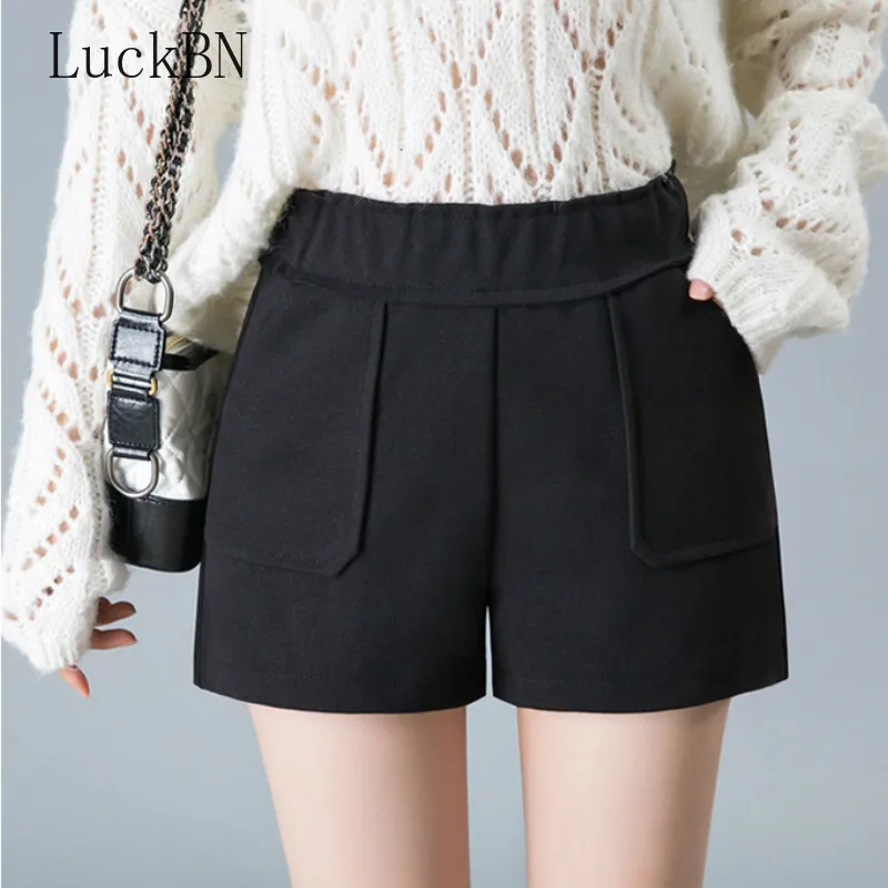 Best Woolen Shorts Women Autumn Winter Shorts New Wide-leg Short Pants High Waist Casual Wool Pants Fema